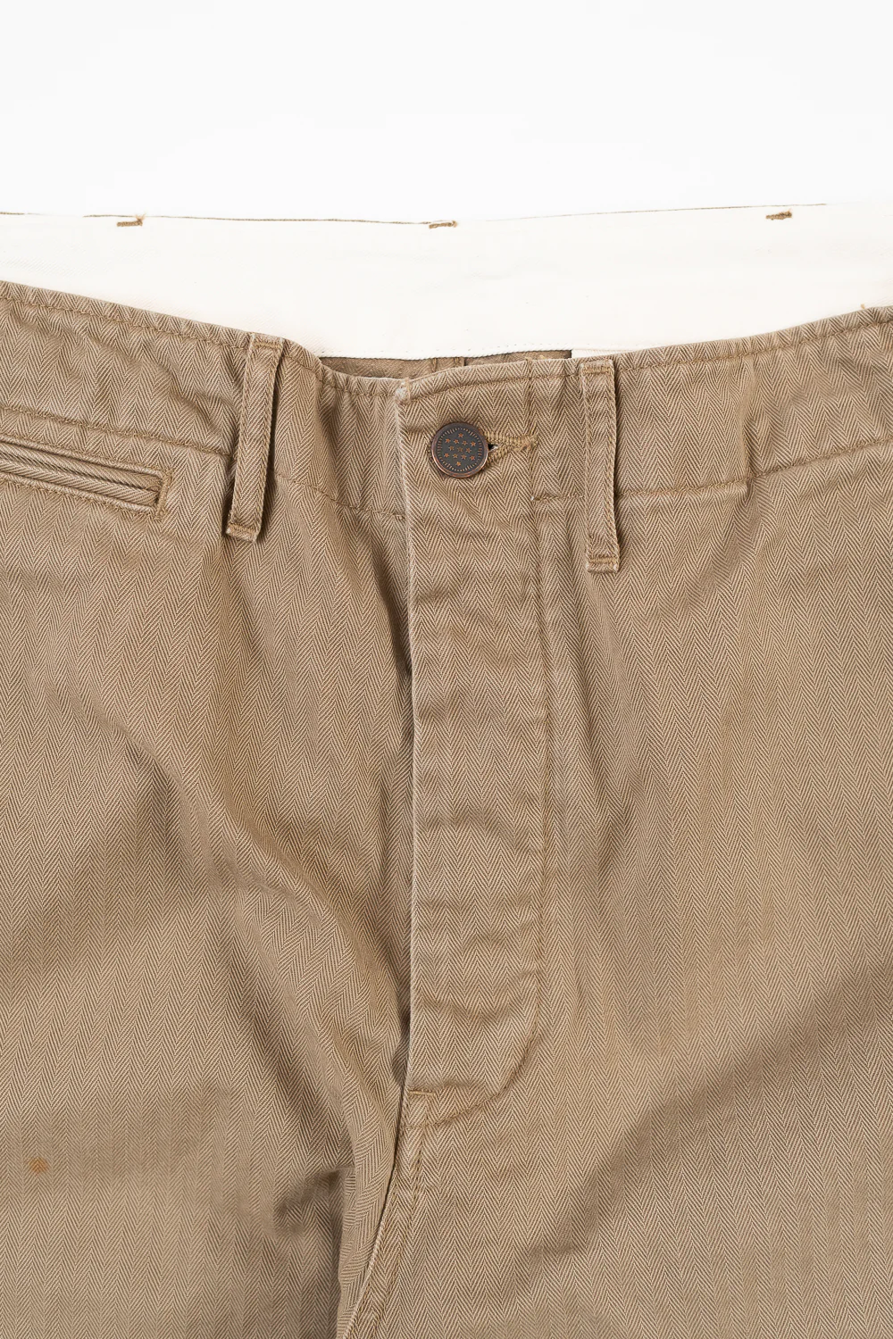 This version of the classic 1201 U.S. Army 1941 khaki pant is crafted in a specially developed SZ twisted herringbone with a robust twill that sets it apart. With 13-star fly buttons as a nod to tradition, the design maintains the essential specifications of the original 41 khakis, while the herringbone material adds a unique texture and character. This release is exclusively hand-processed to create a perfectly worn-in, vintage look, so they’re ready to wear from day one, feeling and looking as if they’ve already been part of your wardrobe for years.