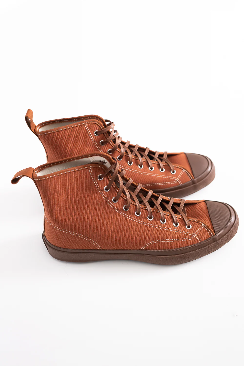 We’ve admired Moonstar from a distance for some time now. The story of the Moonstar factory in Kyusyu, Japan is now one of legend. The attention to detail and fine crafting are unmatched in the industry. As we made our transition from solely a boot company to sneakers, we knew we must have the best. The process of ka-ryu or vulcanization has been perfected in their factory in Kurume since the company's inception in 1873. The canvas uppers are sewn slowly with precision while the rubber strips and soles are carefully inlaid to prepare for their infamous vulcanization process. The shoes are heated to 120° for 70 minutes making the rubber soft and gummy for your walking pleasure.