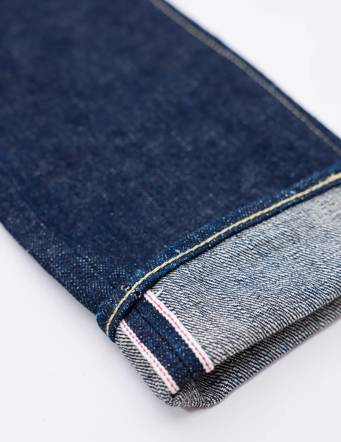 - 18oz rope dyed indigo warp, natural weft Japanese selvedge denim