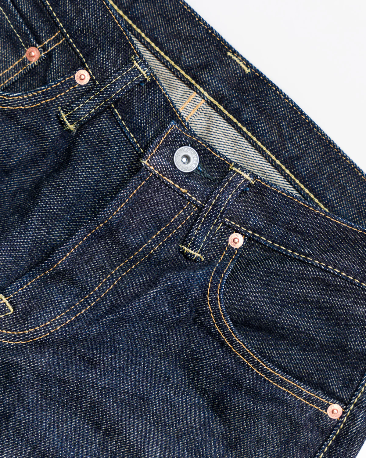 - Selvedge side seams and fly construction