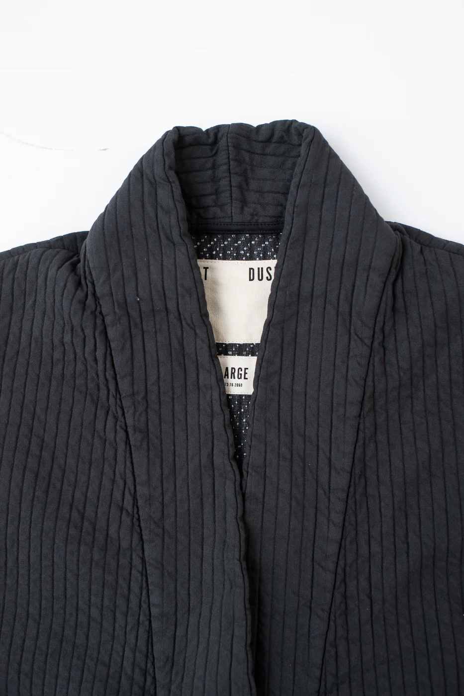 You could say that we have a pension for buying anything quilted. This double-face cotton material is a prime example of that. The layer of texture you get from a simple single needle stitch brings an otherwise flat an ordinary-looking fabric to life. With the texture on the outside and the dot print on the inside, we felt ourselves being drawn to the entire collection for full-suit capabilities. This particular piece can be the final layer to a 3-piece outfit, all in the same color...or you could mix and match with the Mastik colorway. Whatever you do, this kimono-style garment makes for an incredibly unique outerwear wardrobe staple.