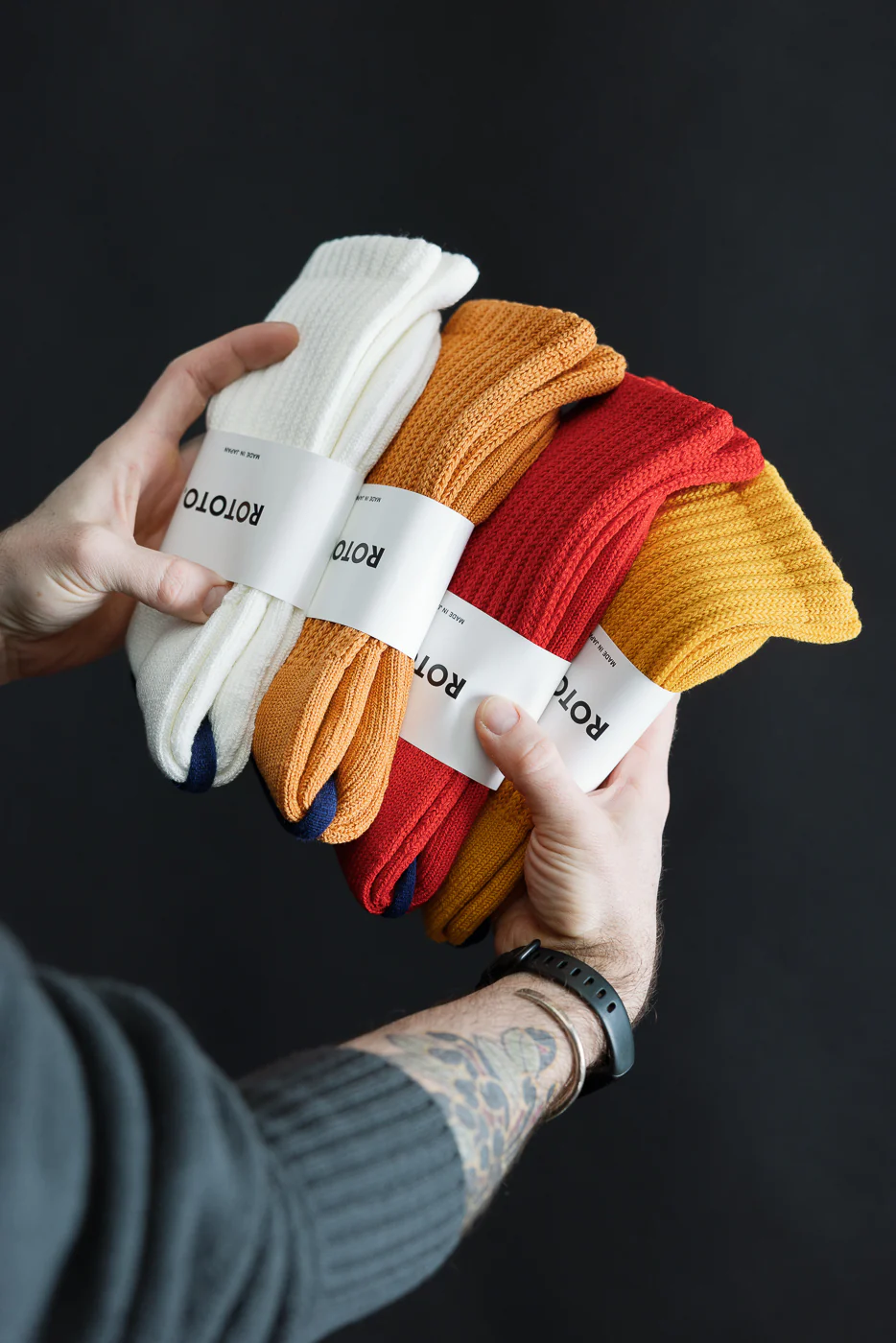 While it's stiff competition, the Loose Pile Crew Sock has easily become our favorite sock from Rototo. They're the ones we go to first every time in our sock drawer. Made with stretchy fabric that gently follows the foot shape, these socks feel less tight, especially around the opening. With long ribs, you can these chunky around the ankle or pulled all the way up. The pile lining on the sole keeps you comfortable with fluffy texture. These babies are made on special knitting machines by outstanding craftsmen in Japan.