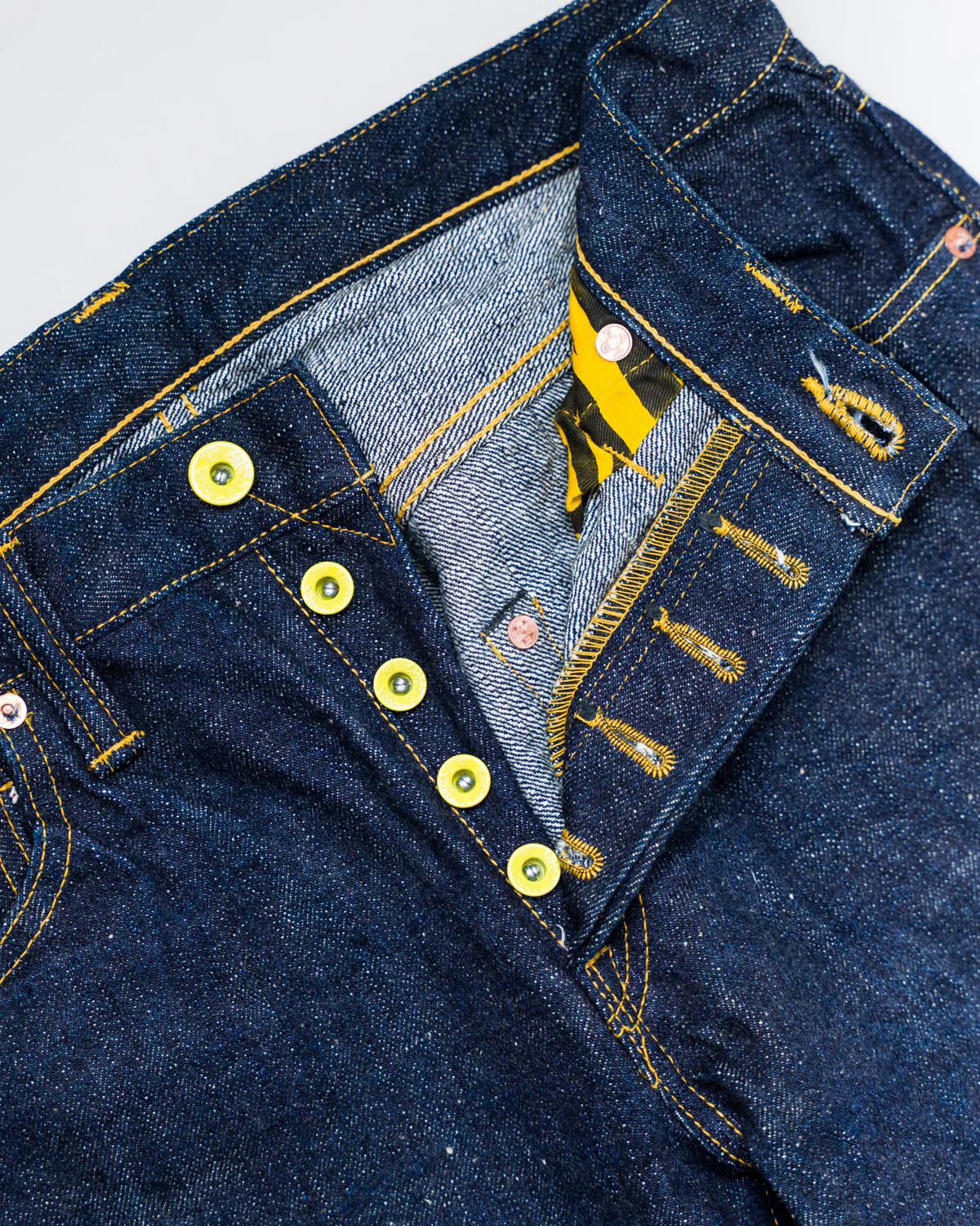 - 5 Yellow coated "Matsunoki" button fly with Samurai Jeans embossing