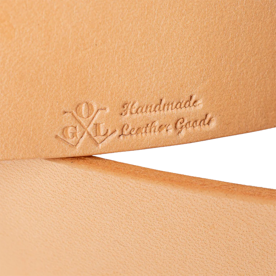 Natural vegetable-tanned leather belt with ellipse punch holes and solid brass vintage style buckle. 1.75" wide which is specifically designed to fit trousers with wider belt loops. These are handmade by Obbi Good Label in Singapore. They're constructed with 12oz full-grain cowhide leather which will age naturally with unique characteristics. These will eventually turn a deep shade of brown with proper time and age.